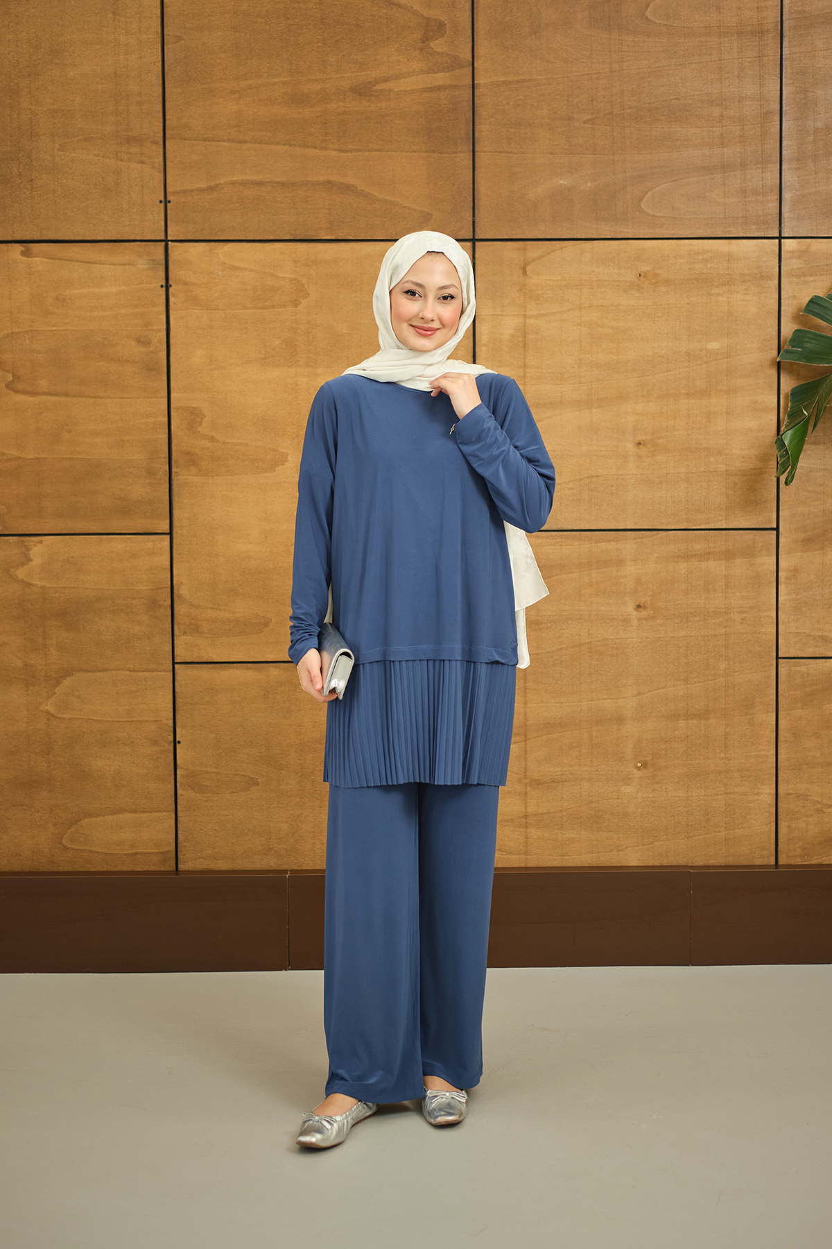 Alt Piliseli Bisiklet Yaka Takım İndigo Mavi
