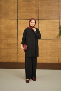 Alt Piliseli Bisiklet Yaka Takım Siyah
