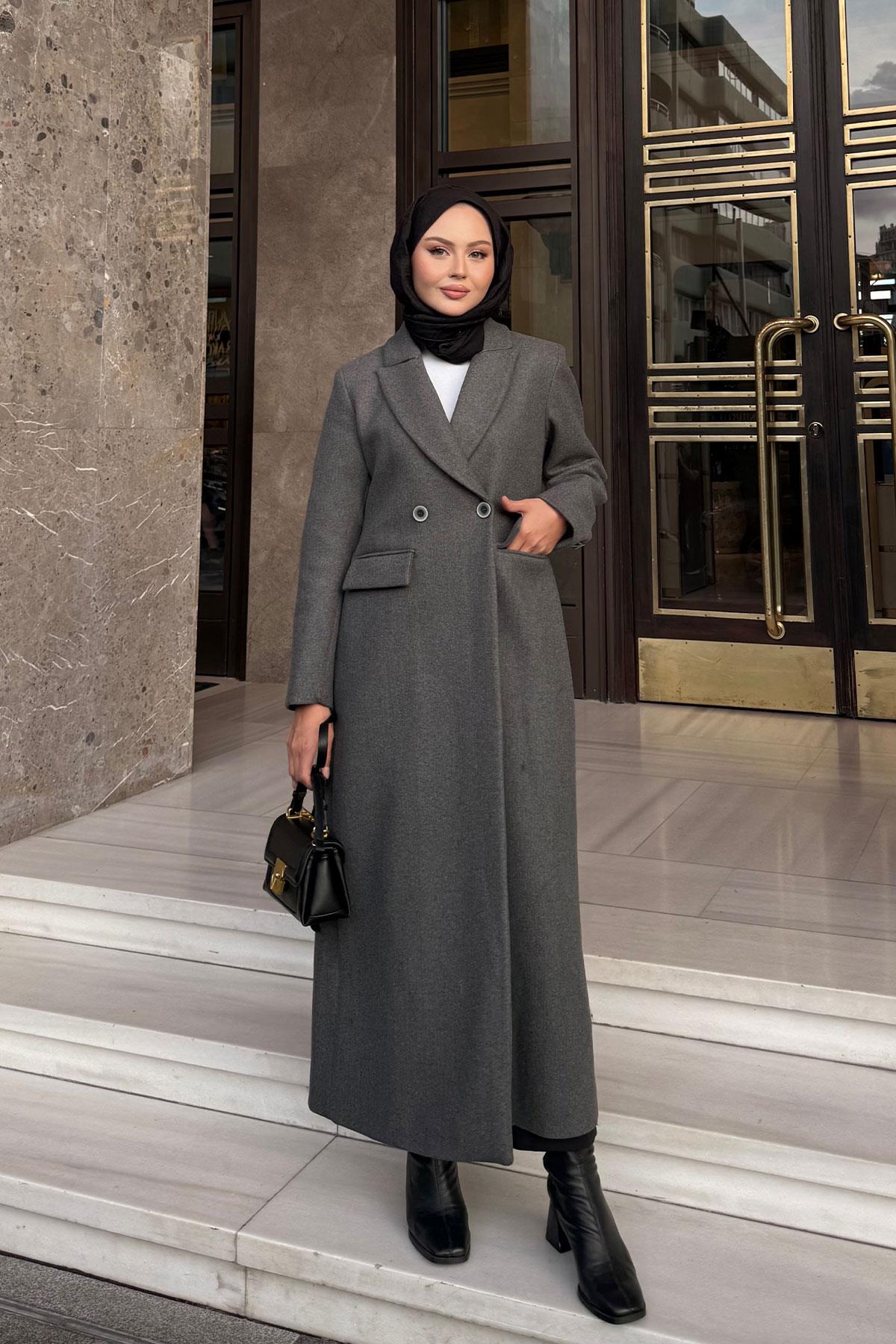 Arka Düğme Detaylı Kaşe Kaban Antrasit