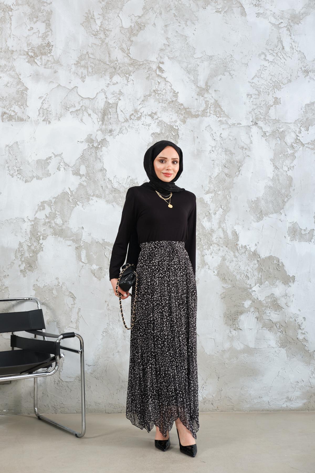 Asimetrik Şifon Etek Siyah