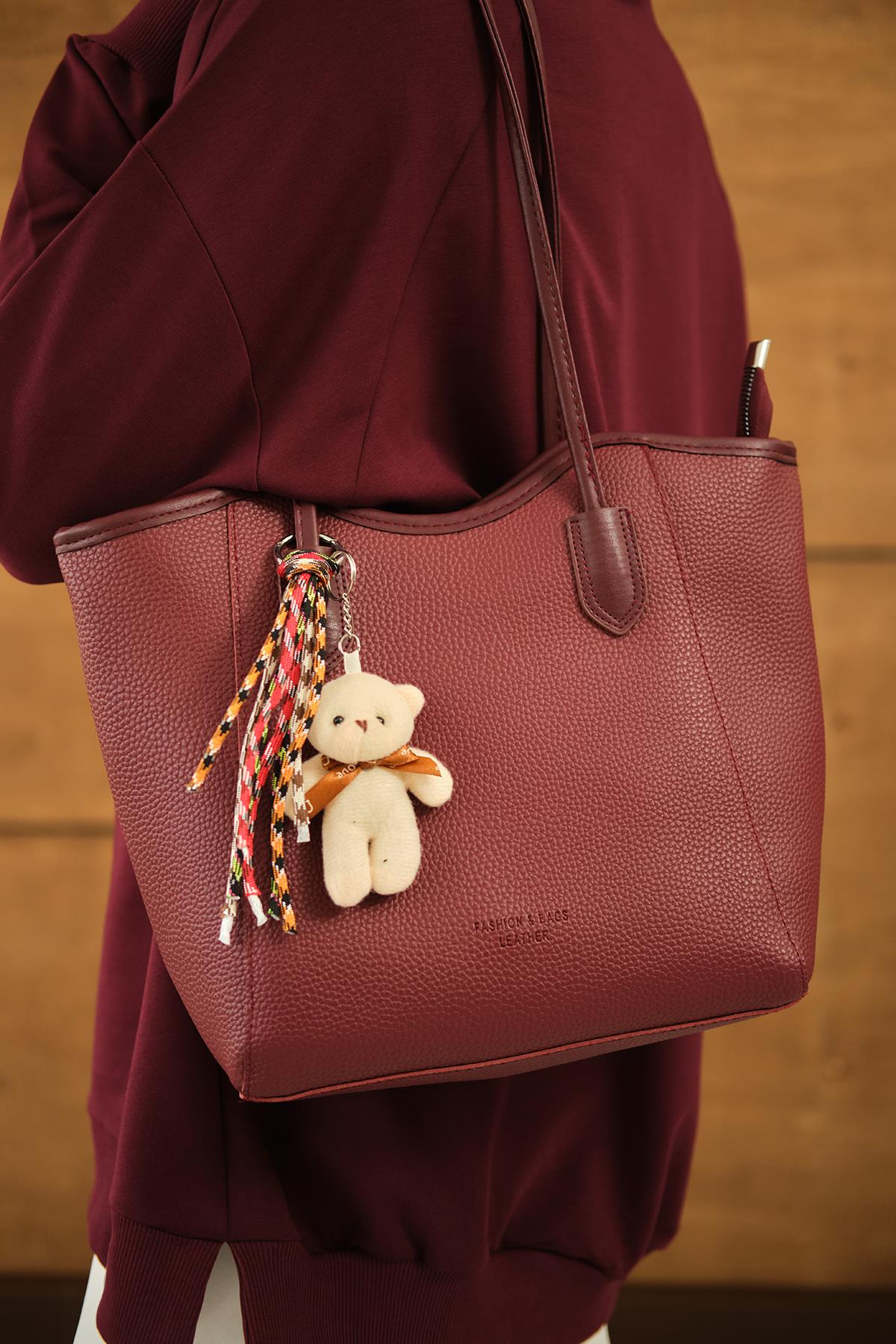 Ayıcık Detay Çanta Bordo