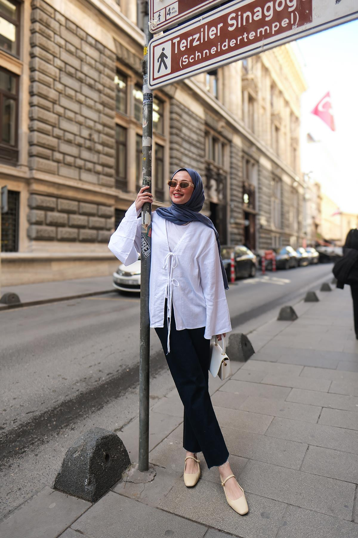 Bağlamalı Keten Gömlek Beyaz