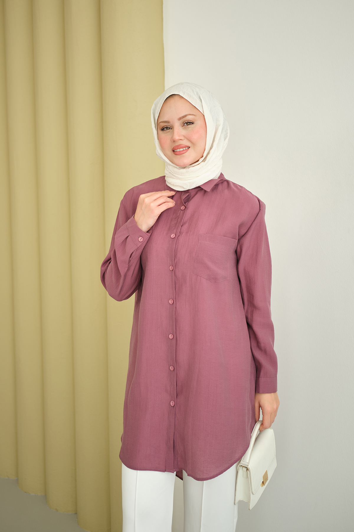 Basic Uzun Gömlek Gül Kurusu