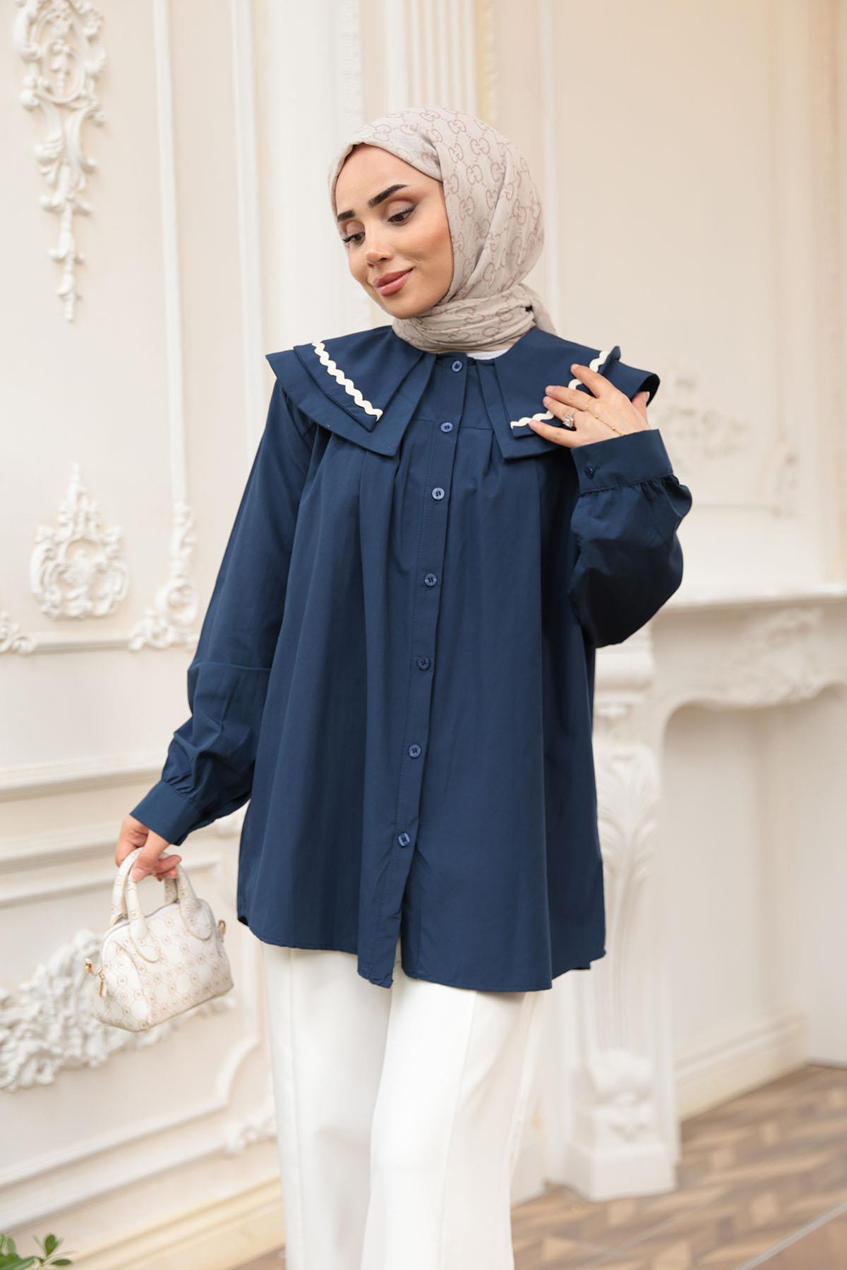Bebe Yaka Şerit Detaylı Gömlek Lacivert