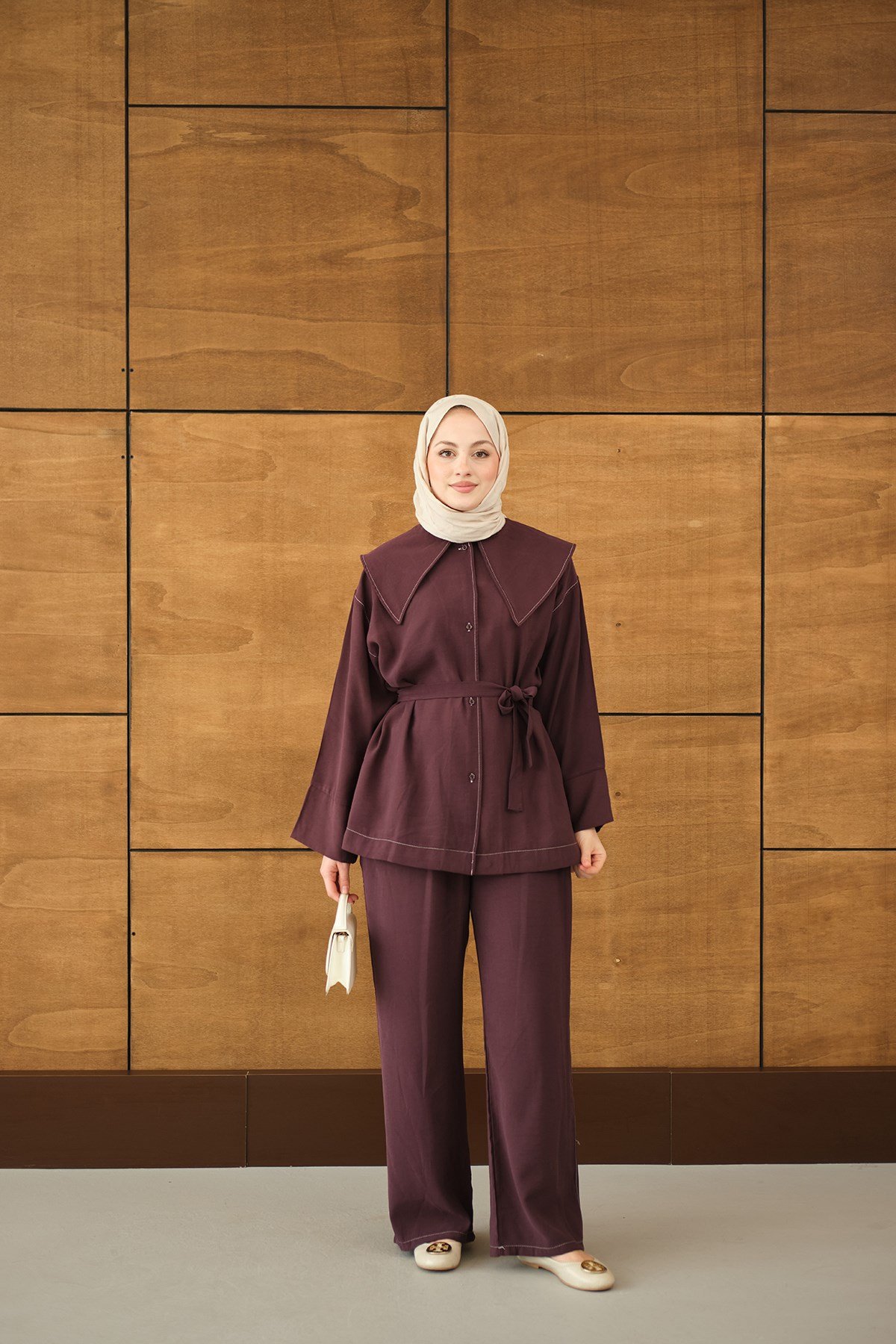 Bebe Yaka Süs Dikiş Detay Takım Mürdüm