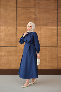 Bel Bağlamalı Elbise Lacivert