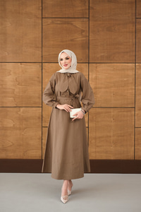 Bel Bağlamalı Elbise Vizon