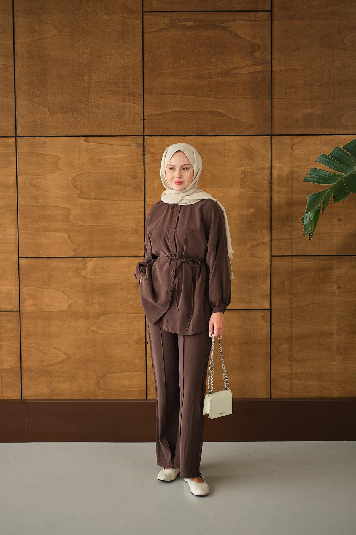Bel Bağlamalı İkili Takım Kahverengi