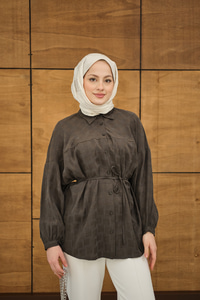 Bel Bağlamalı Tencele Gömlek Antrasit