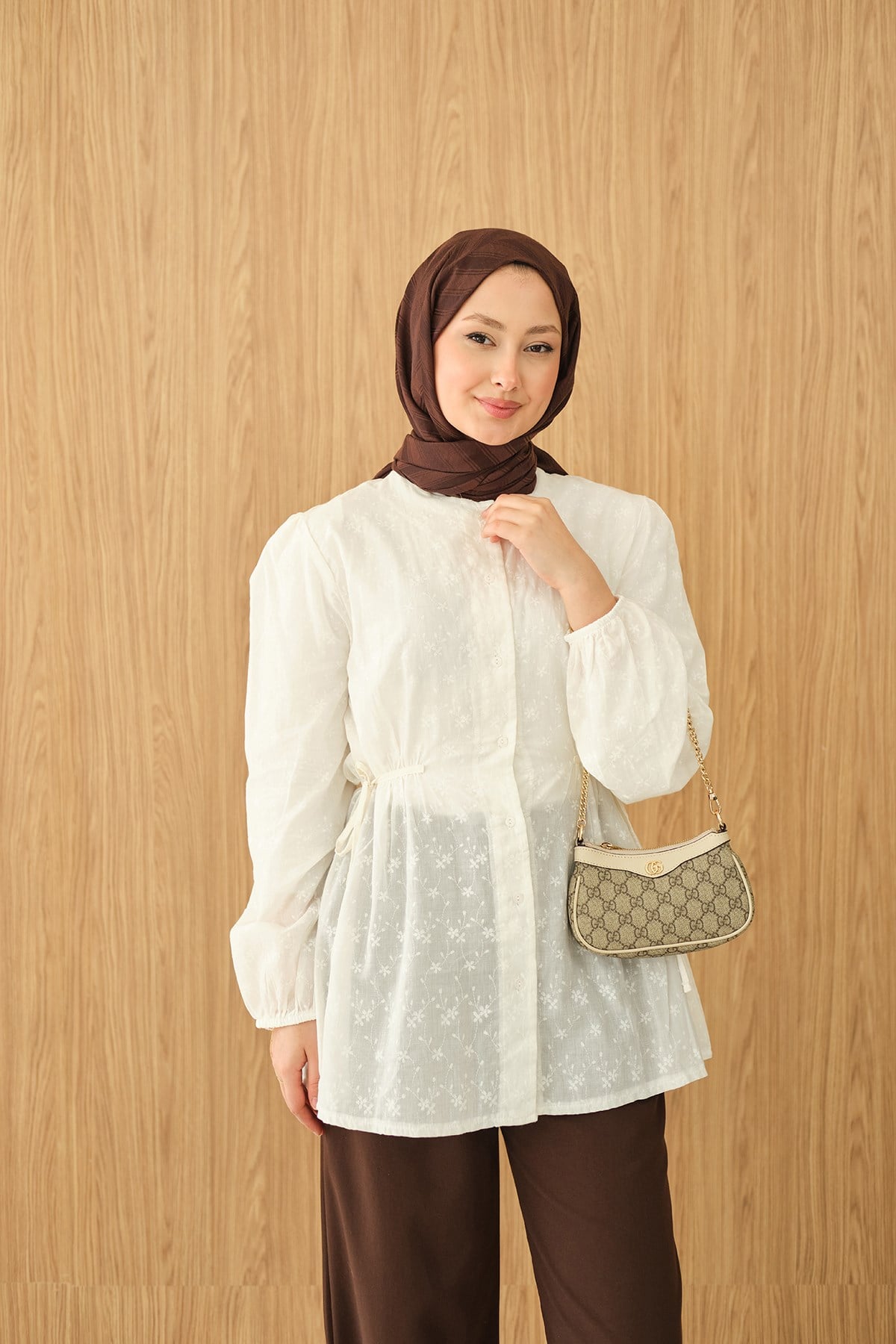 Belden Bağcık Detaylı Gömlek Ekru