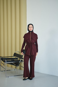 Beli Ayarlanabilir Gold Fermuar Detay Yelekli Takım Bordo