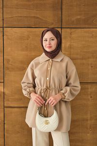 Beli Ayarlanabilir Gömlek Yaka Angora Ceket Vizon