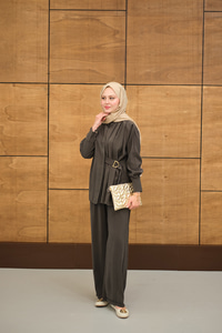 Beli Gold Kemer Detay Gömlek Yaka Takım Antrasit