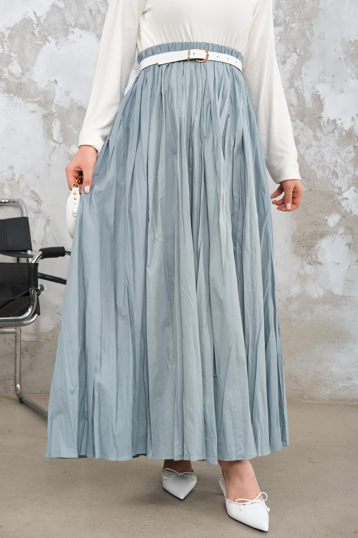 Beli Lastikli Kırışık Detay Etek Bebe Mavi