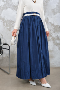 Beli Lastikli Kırışık Detay Etek Saks Mavi