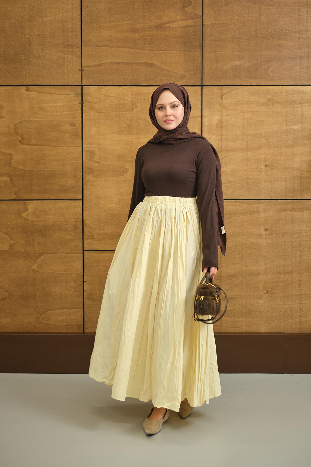Beli Lastikli Kırışık Detay Etek Sarı