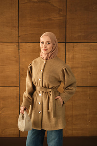 Beli Lastikli Peluş Kaşe Kaban Vizon