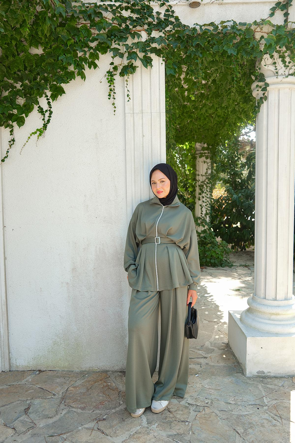 Beli Pile Detaylı Takım Yeşil