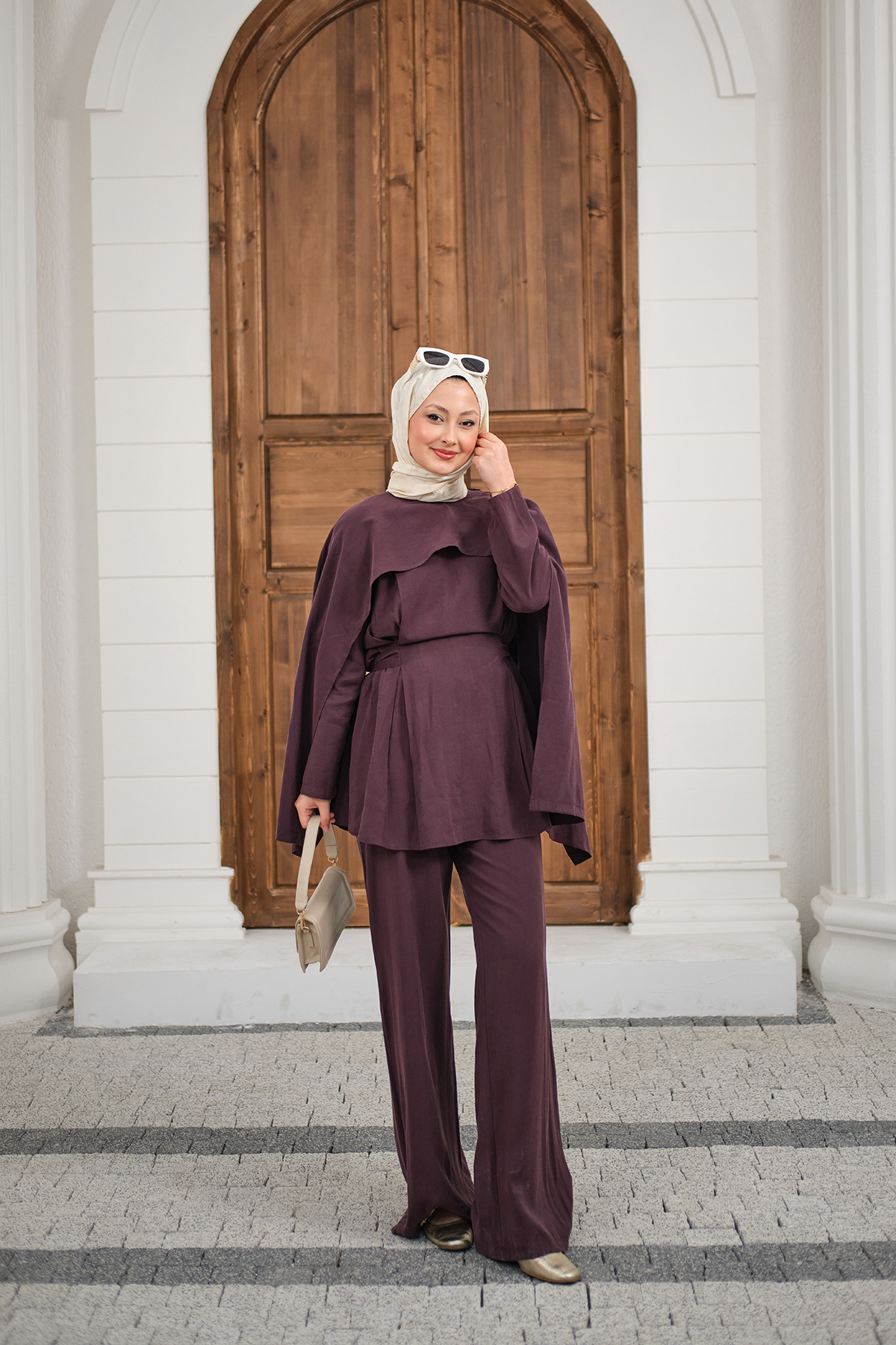 Beli Pileli Çıkarılabilir Pelerinli Takım Mürdüm