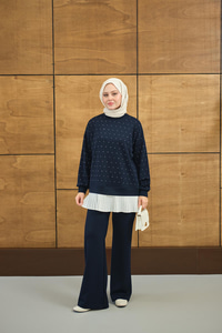 Beli Pileli Taşlı İkili Takım Lacivert