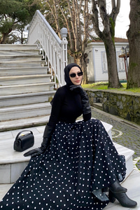 Puantiyeli Astarlı Etek Siyah