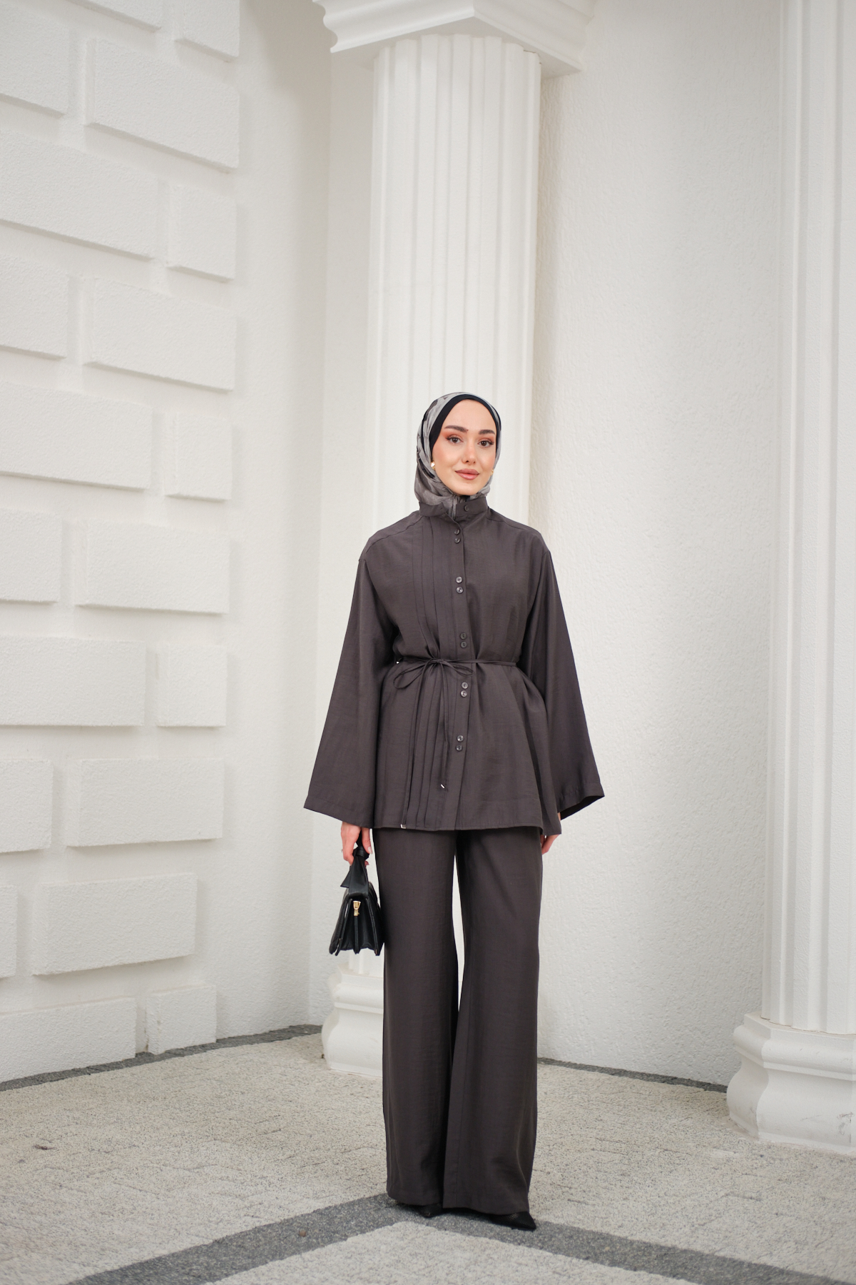 Bisiklet Yaka Bel Bağlamalı Basic Takım Antrasit