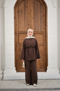 Bisiklet Yaka Bel Bağlamalı Basic Takım Kahverengi