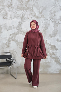 Bisiklet Yaka Kurdele Detay Modal Takım Bordo