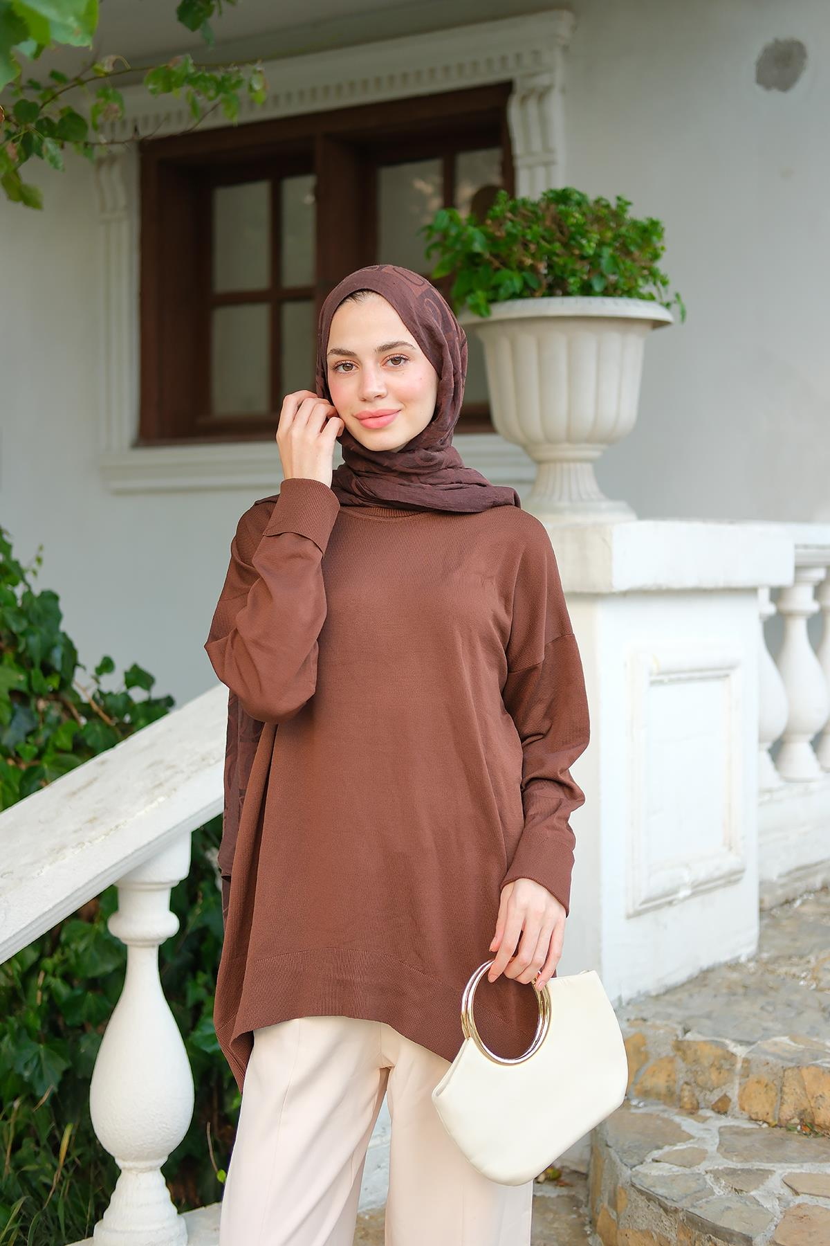 Bisiklet Yaka Oversize Triko Kazak  Kahverengi