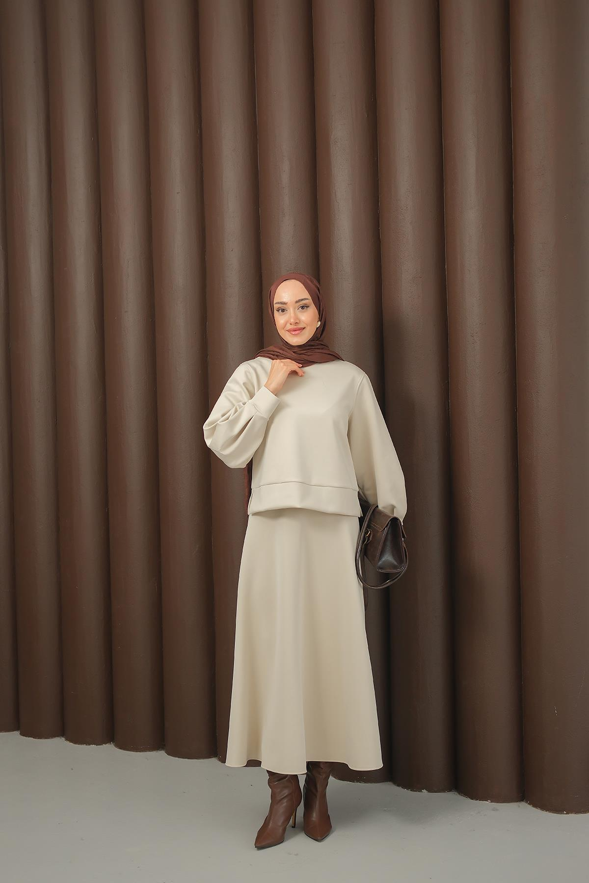 Bisiklet Yaka Scuba Takım Krem