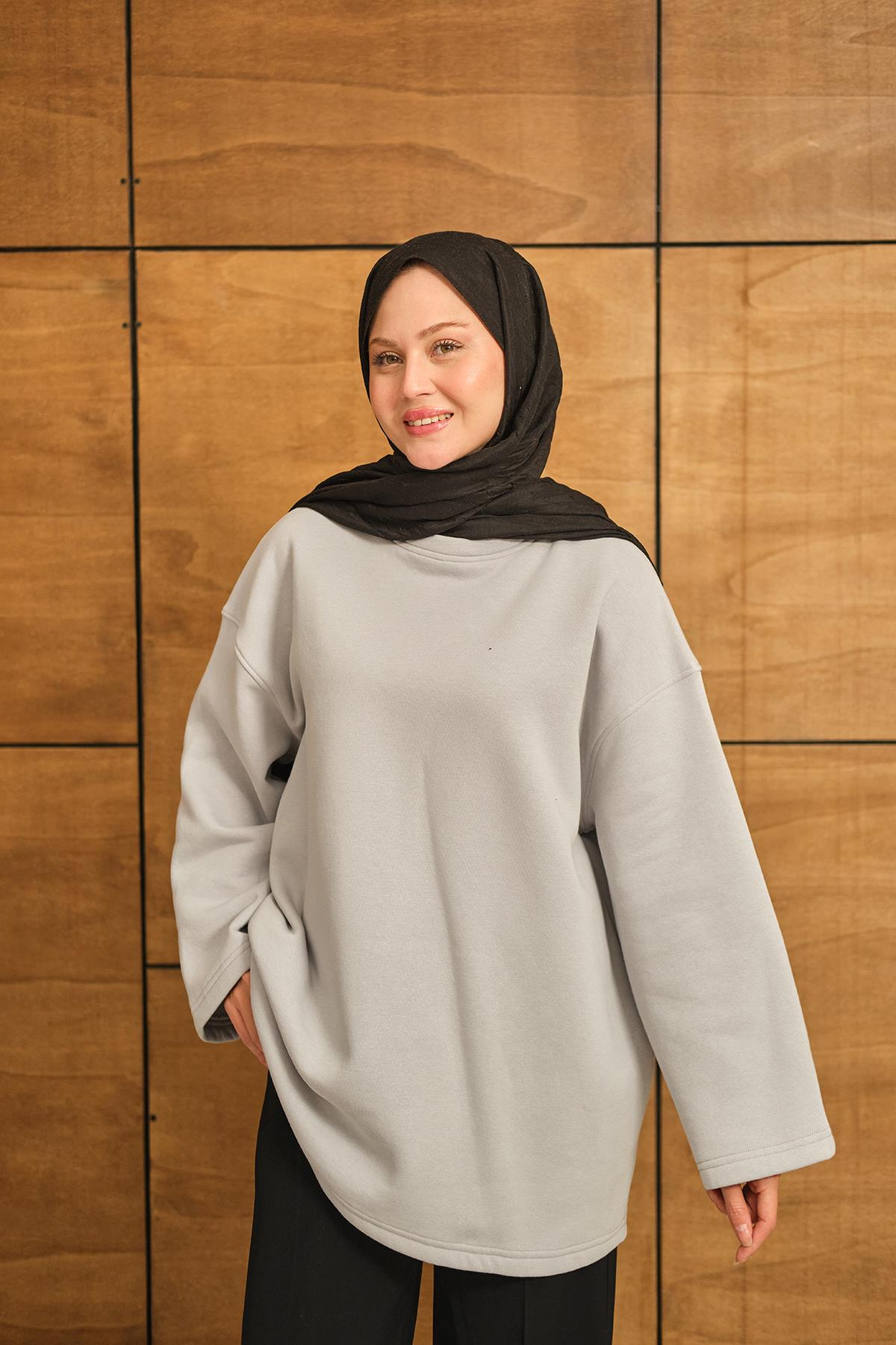 Bisiklet Yaka Sweat Gri