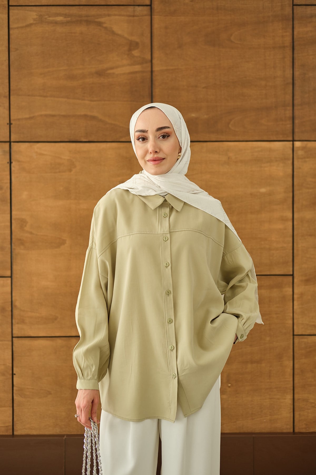 Biyeli Bel Bağlamalı Gömlek Su Yeşil
