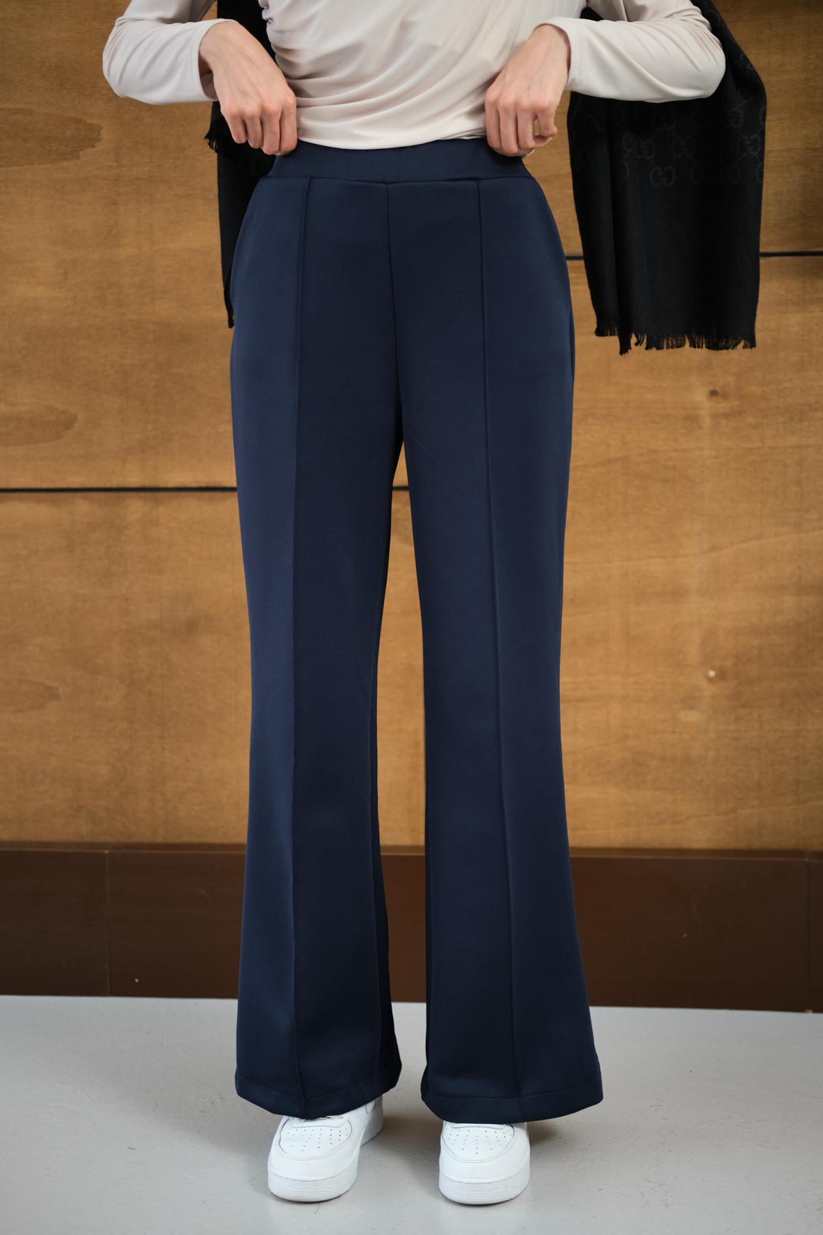 Ön Dikişli Bol Paça Pantolon Lacivert