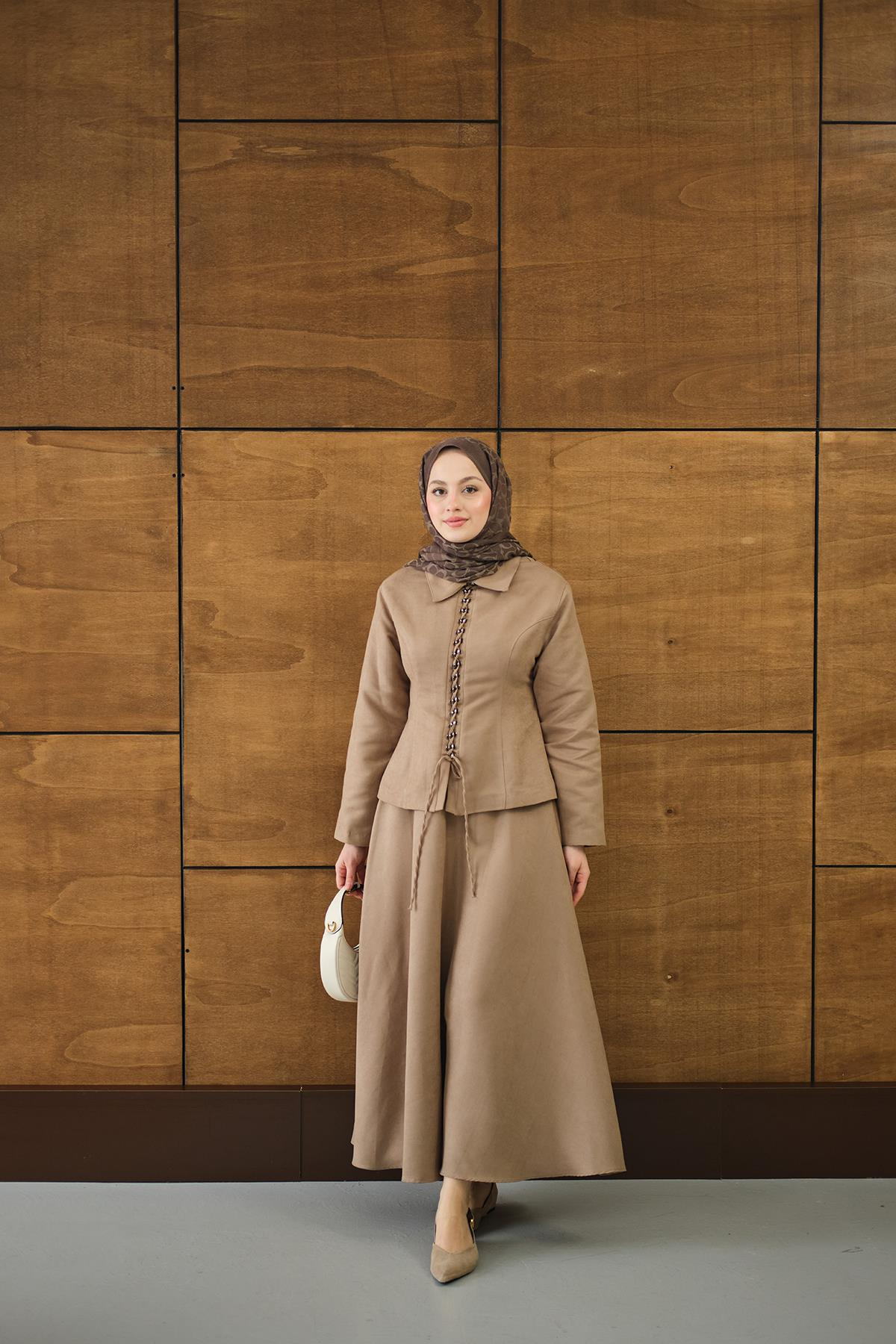 Bluz Kancalı Nubuk Takım Vizon