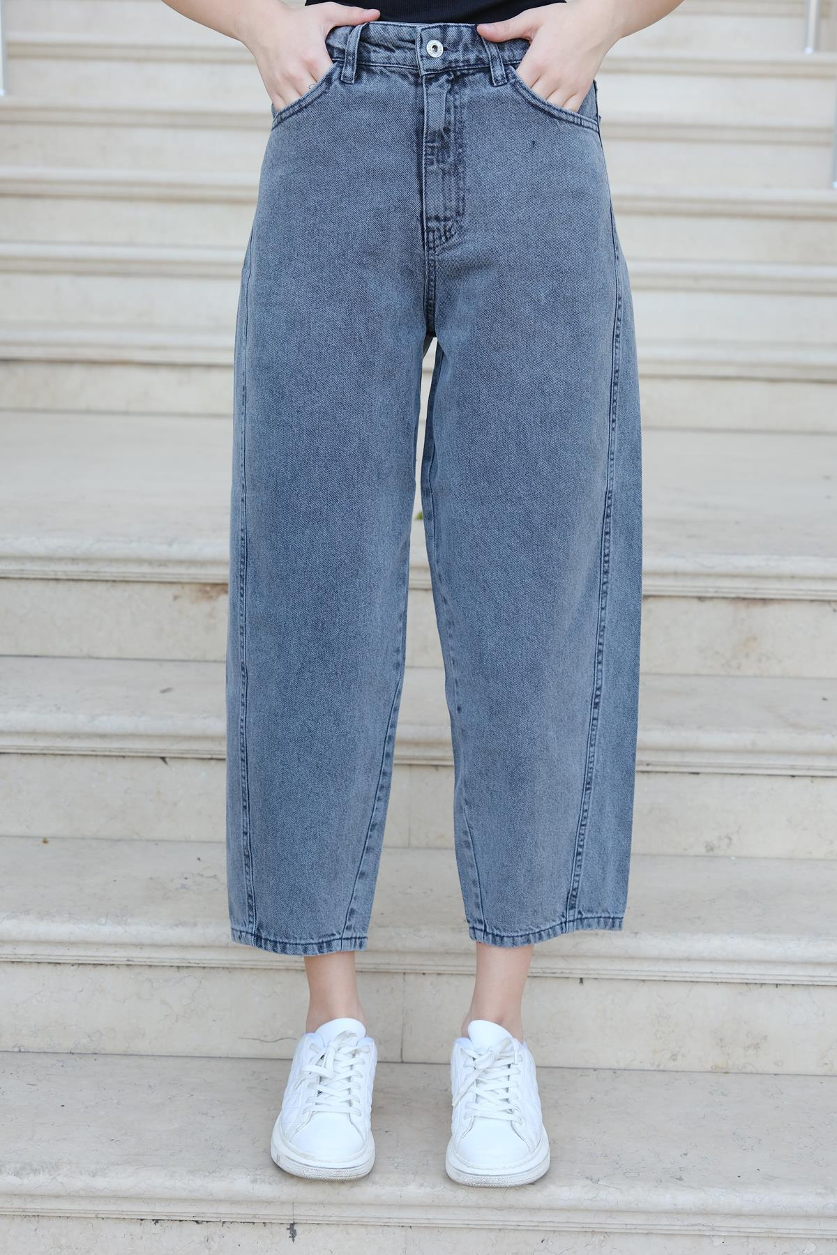 Bol Kesim Kot Pantolon Füme