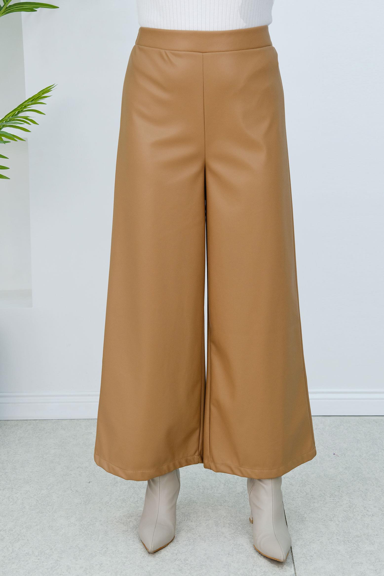 Bol Paça Deri Pantolon Vizon