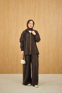 Bol Paça Fermuarlı Takım Kahverengi