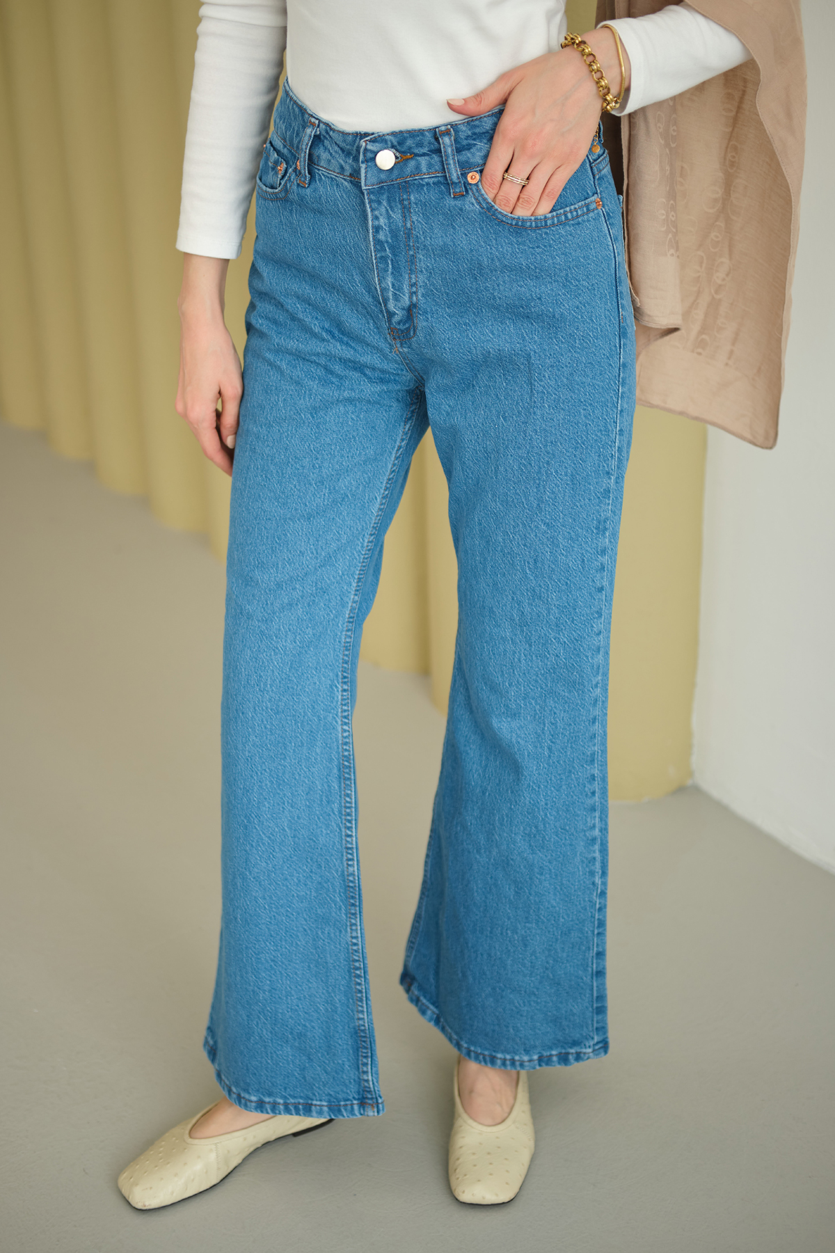 Boru Paça Kot Pantolon Mavi