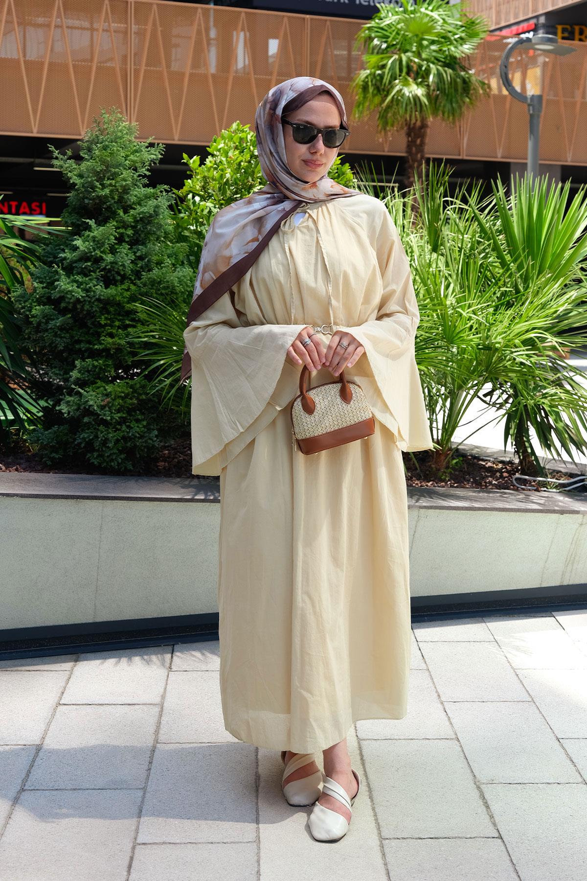 Editör Notu: Boyun Bağcık Detay Bel Lastik Kemerli Elbise Sarı, Geniş kollu tasarımıyla modern bir duruş kazandırıyor. Rahat kesimiyle zarafet ve konforu bir arada sunuyor.