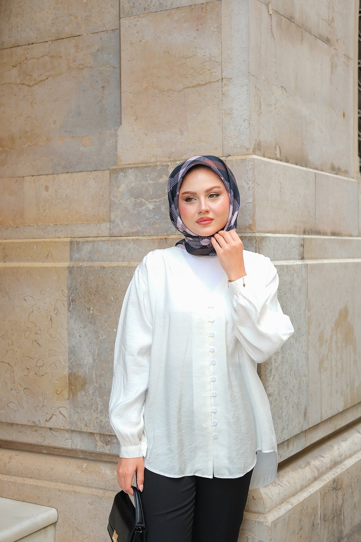 Brit Düğme Detaylı Vual Gömlek Beyaz