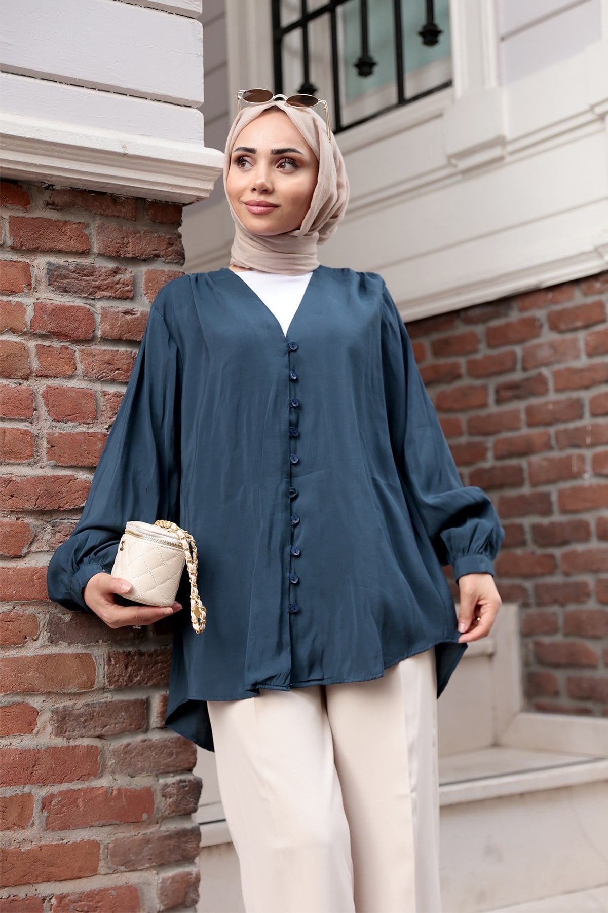Brit Düğme Detaylı Vual Gömlek Lacivert