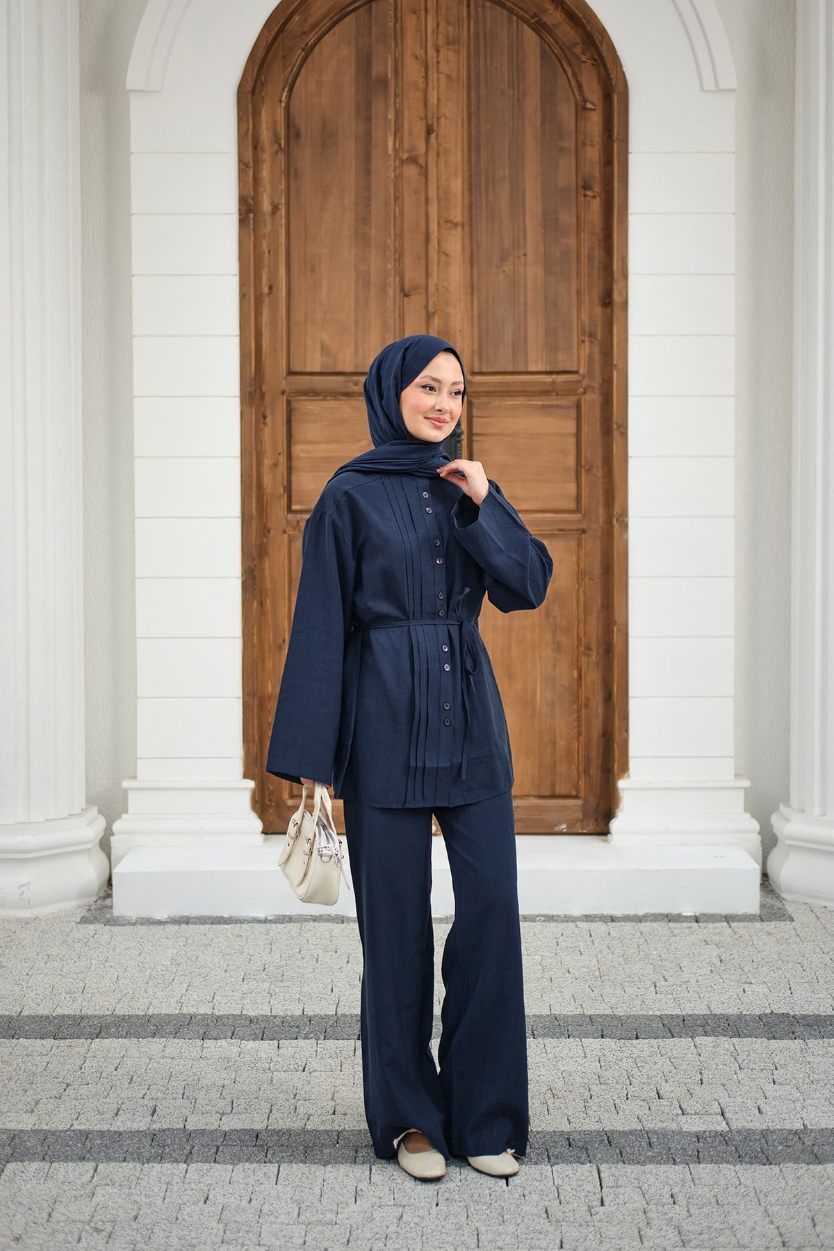 Büzgü Detay Bel Bağlamalı Takım Lacivert