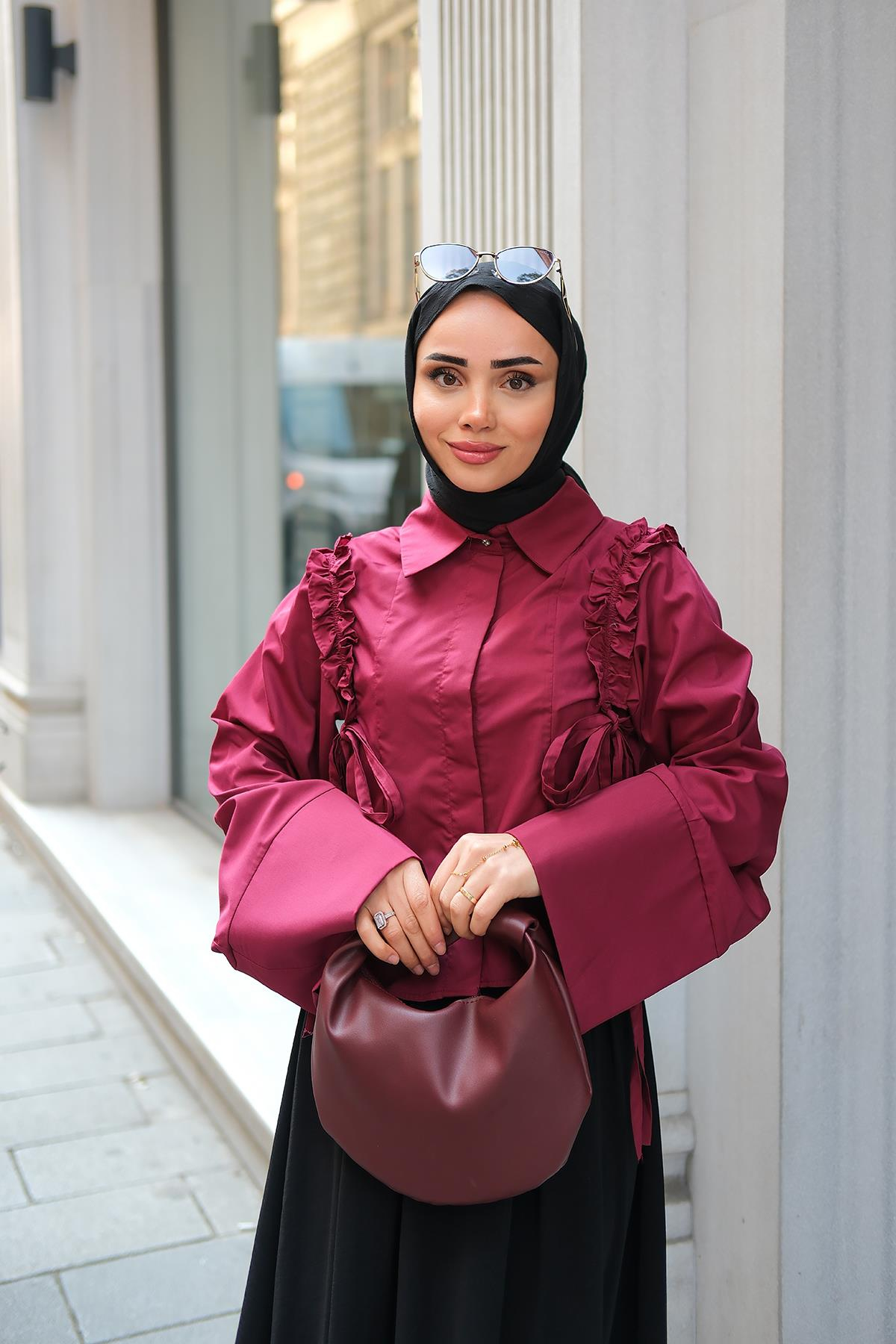 Büzgü Detaylı Gömlek Bordo