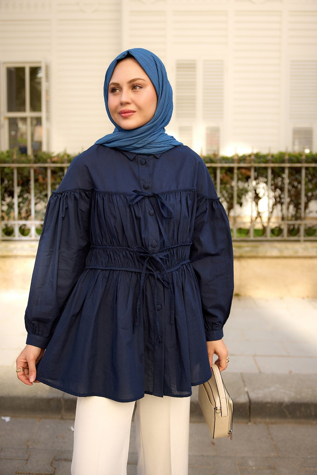 Büzgü Detaylı Vual Gömlek Lacivert