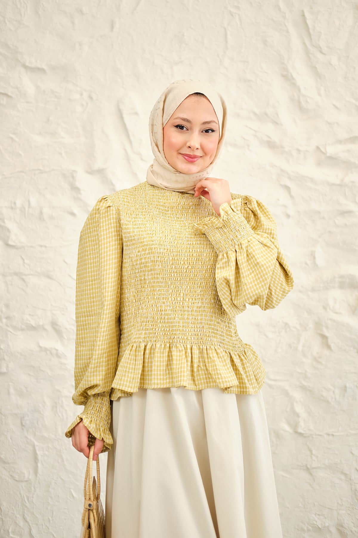 Büzgülü Ekose Etekli Takım Sarı