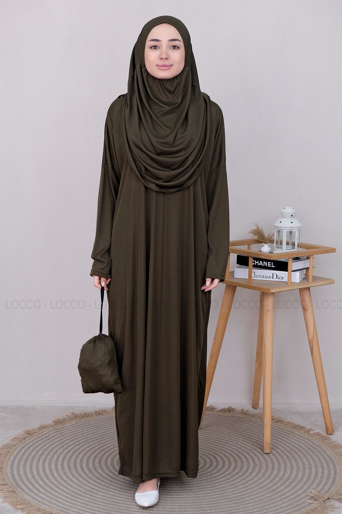 CANTALI TEK PARCA NAMAZ ELBISESI Haki Yeşil