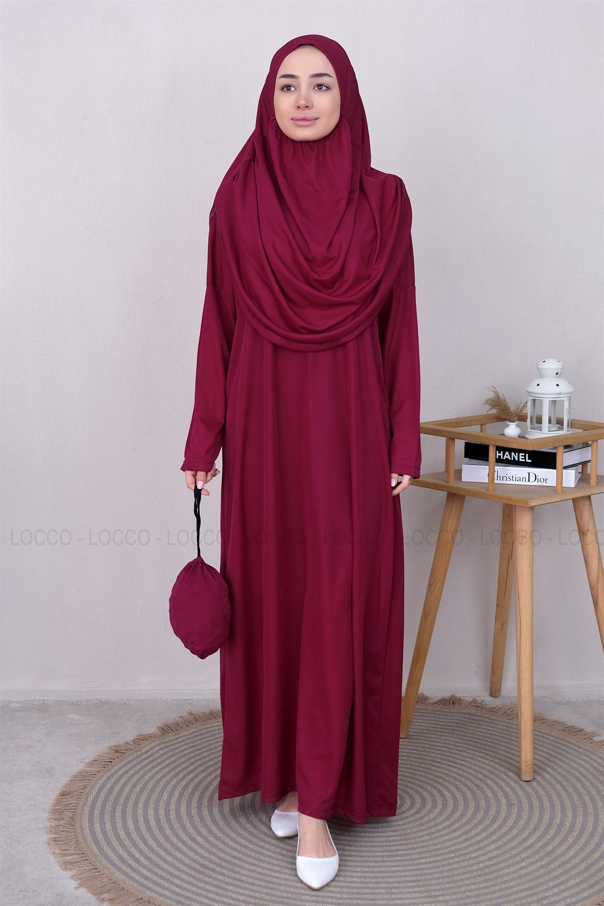 CANTALI TEK PARCA NAMAZ ELBISESI Mürdüm