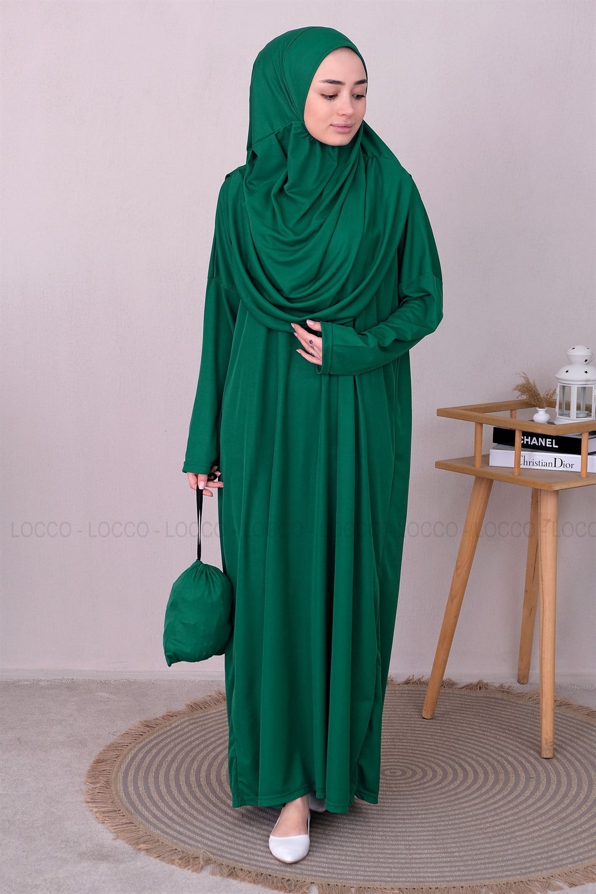 CANTALI TEK PARCA NAMAZ ELBISESI Zümrüt Yeşil