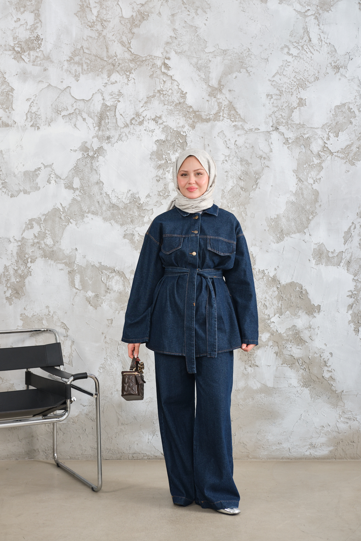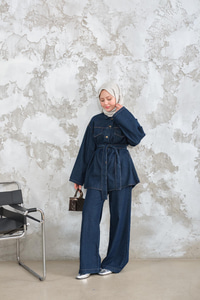 Cep Detay Bel Bağlamalı Kot Takım Lacivert