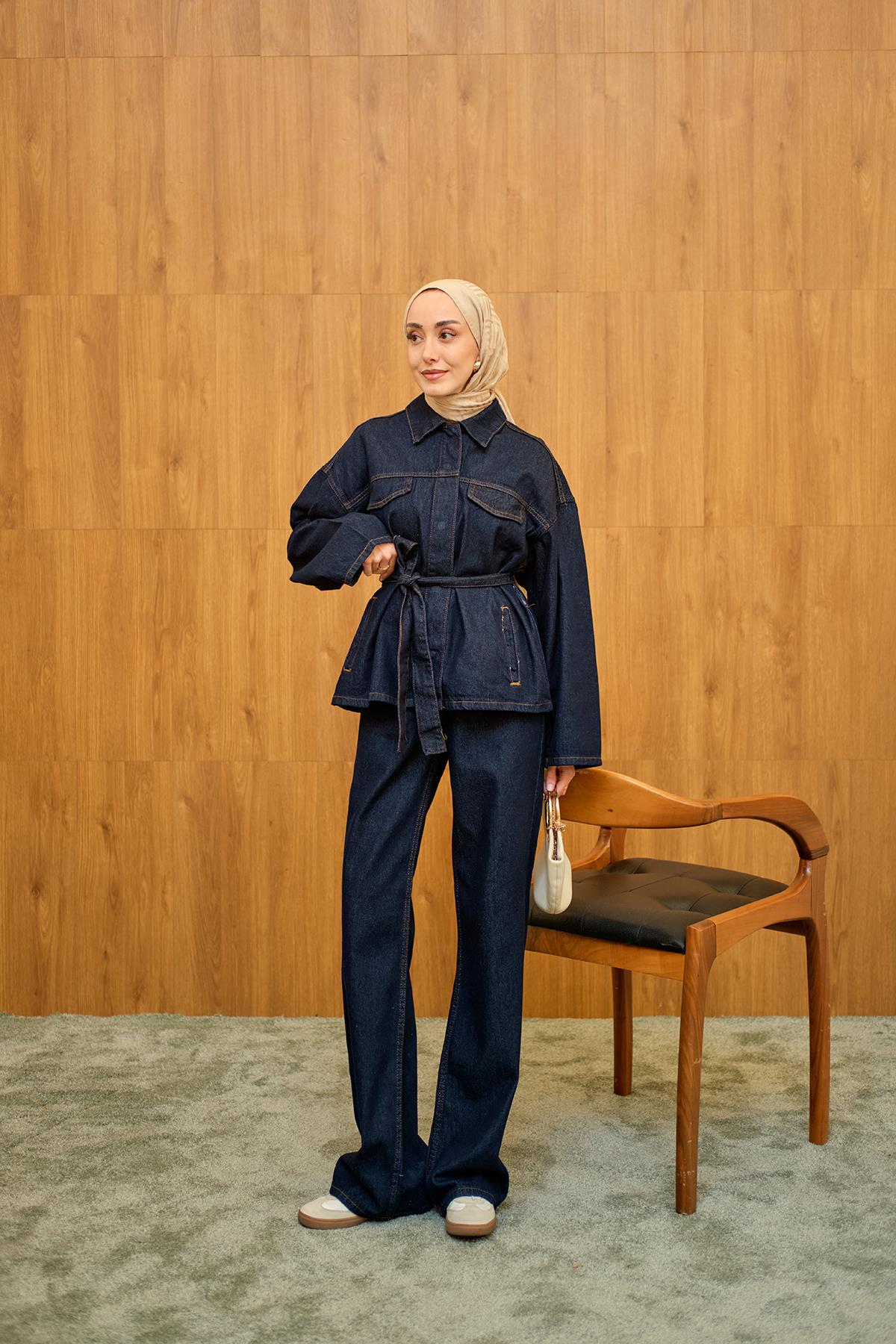 Cep Detaylı Kot Takım Lacivert